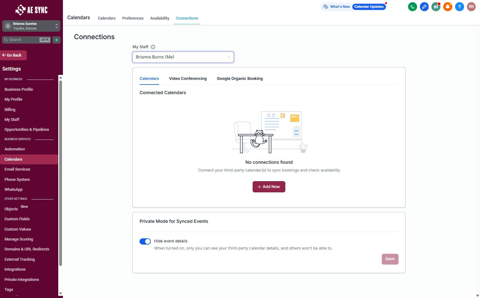 AE Sync lets you connect external calendars (like Google Calendar, Outlook, iCloud, etc.) so that your availability and events stay accurate across platforms. This helps prevent double-bookings and ensures your AE Sync booking tools reflect your real schedule.