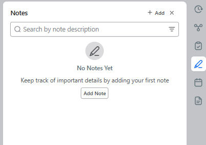 Right Panel – Action modules (Tasks, Notes, Documents, Payments, and Associations)