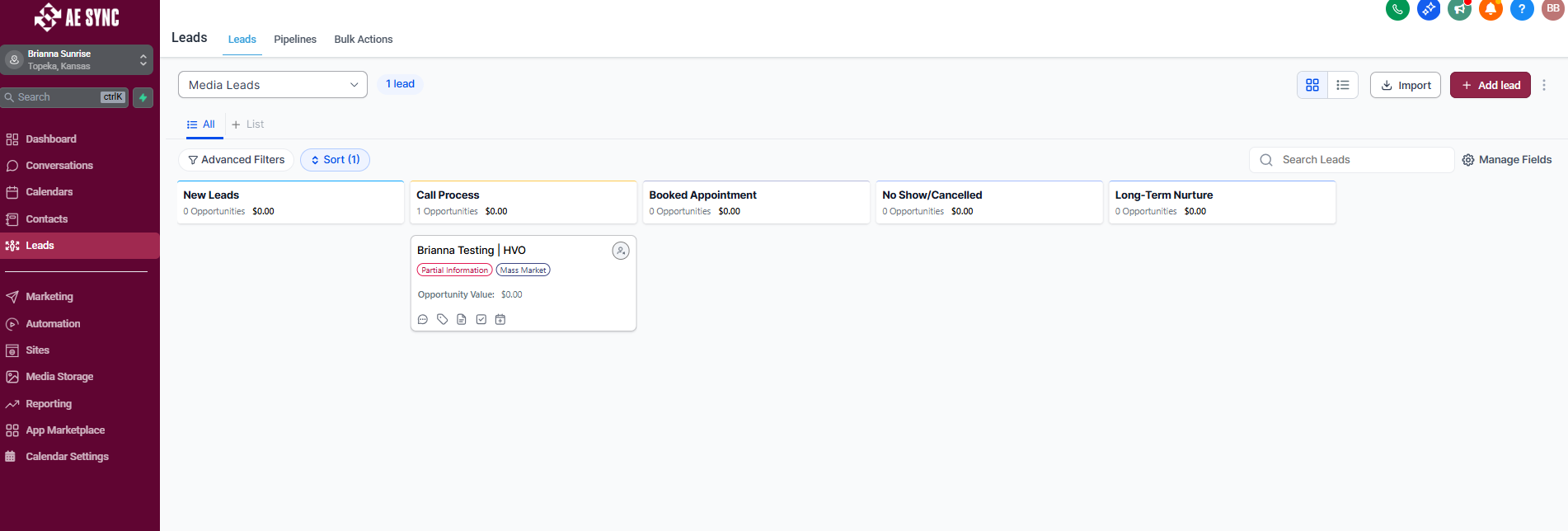 Leads are the backbone of your sales and intake tracking in AE Sync. By organizing contacts into pipelines and stages, you gain clarity, accountability, and insight into your entire process.