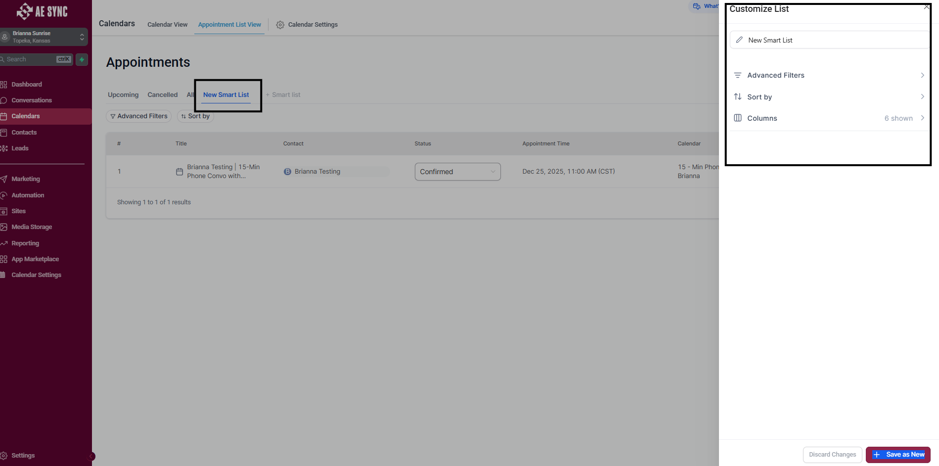 Smart Lists in AE Sync allow you to dynamically filter and view appointments based on specific criteria. These lists update automatically, helping your team quickly identify appointments that require action.