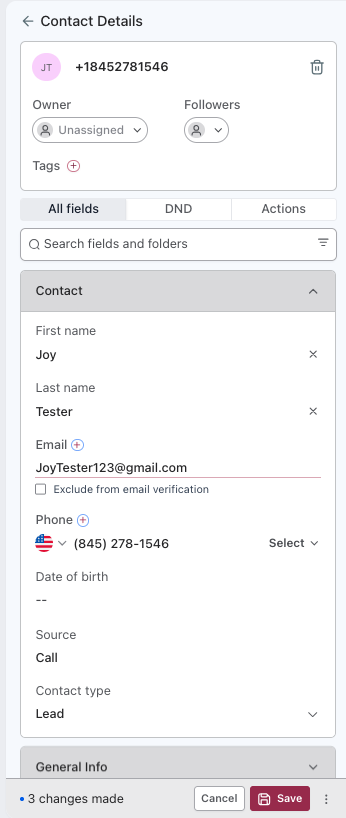 Follow these steps to update the lead: