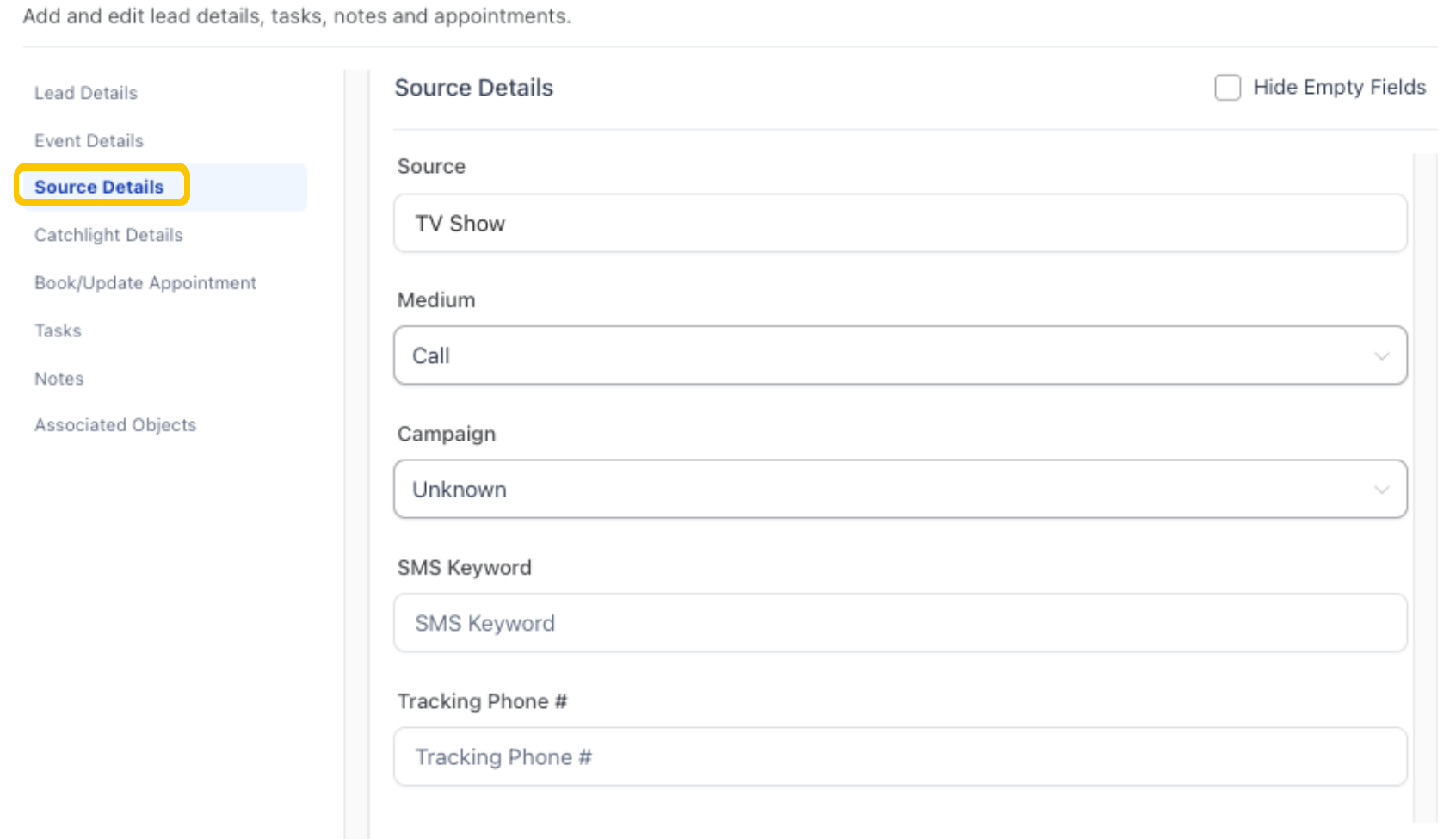 Return to the lead card and update the Campaign field under Source Information: